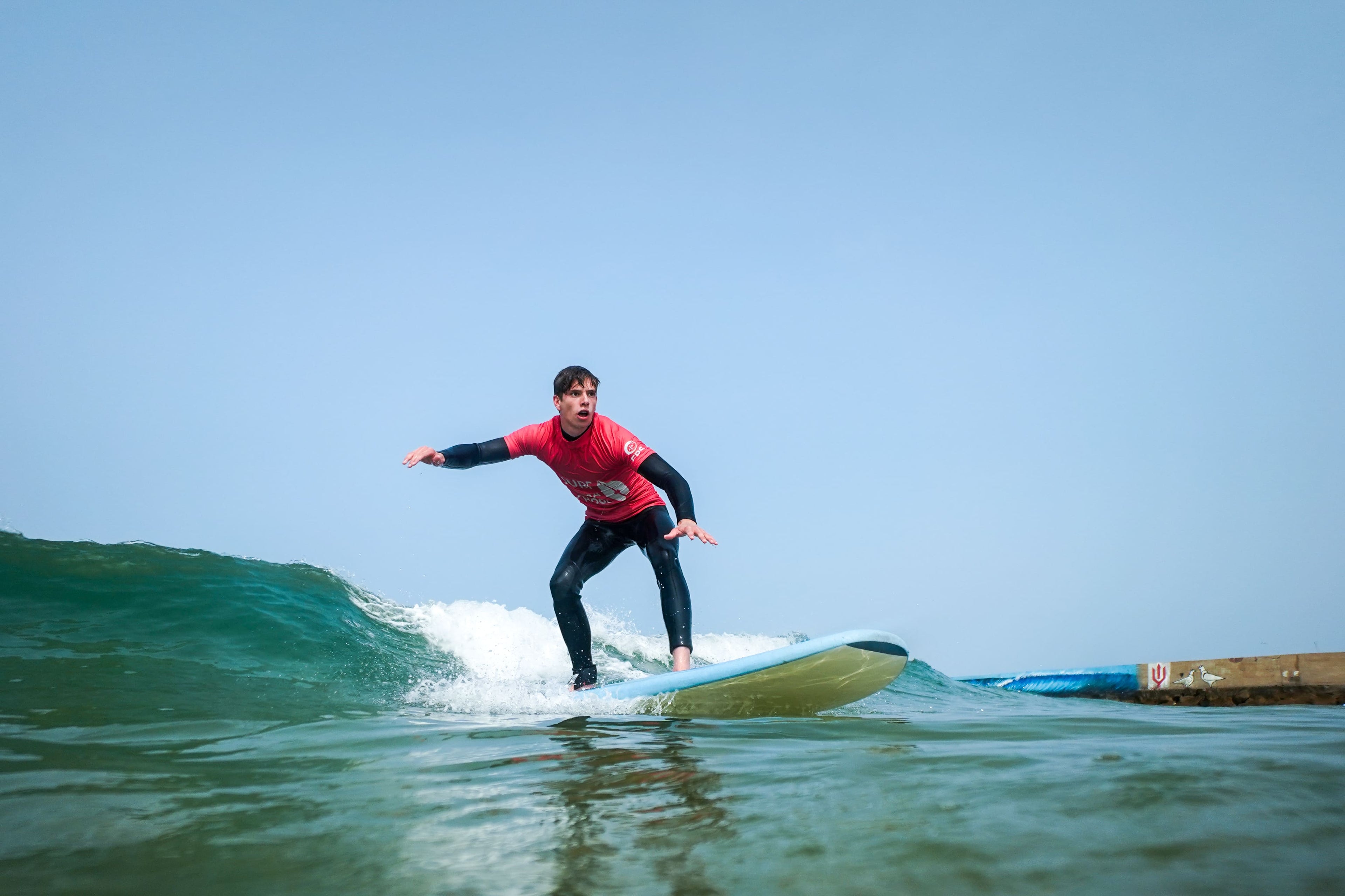 O nosso programa inovador vai além das aulas tradicionais de surf. Integrando ferramentas adicionais, como a Análise de Vídeo e Sessões de Surfskate, criamos uma trajetória clara para que possas alcançar os teus objetivos no surf e elevar o teu nível de habilidade. As aulas são conduzidas em grupo, promovendo uma atmosfera colaborativa onde cada aluno é incentivado a crescer e a progredir. Com grupos de no mínimo duas pessoas e no máximo cinco, garantimos uma experiência coletiva coesa e personalizada.