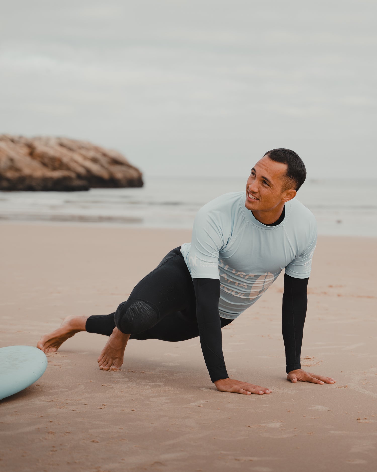 🏄♂️ Surfa com uma 6’2 ✅ Posição regular ⚽ Também é jogador de futebol 💬 É um excelente comunicador e super divertido 🏅 Conhecido por ser dos melhores — e o maior